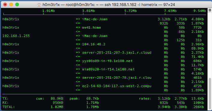 Es una herramienta de supervisión del sistema de línea de comandos que produce una lista actualizada de las conexiones de red. Por defecto, las conexiones están clasificadas por el uso de ancho de banda, con sólo los consumidores de ancho de banda “top” muestran. Puede leer más aquí.